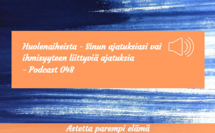 Tällä kertaa podcast-jaksossa pohdintaa yleisistä huolenaiheista. Onko kyseessä meidän omat yksilölliset huolenaiheet ja ajatukset vai ihmisyyteen liittyvät ajatuksia...?